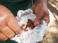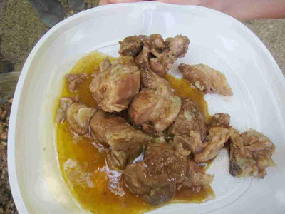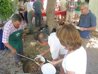 Este año no he querido dejar pasar la ocasión y hemos llegado los primeros con el único fin de ver como Juan hacía la caldereta (por cierto, insuperable). Él dice que echa solo lo que vemos, que no tiene ningún ingrediente secreto, que es cuestión del fuego y de la mano (en eso estamos de acuerdo). Pero no me fío (bueno, no nos fiamos ninguno) ni un pelo. Sobre todo por esa carita de pillo que pone cuando te lo cuenta y esa risa picarona... ¡Juan, tú nos estás guardando algo que no nos dices...!.