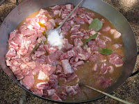 Lo cierto es que es una escusa para degustar la ya "tradicional" caldereta de cordero que prepara Juan, al que yo denominaría "Calderetero Mayor del reino", y ya veréis por qué.