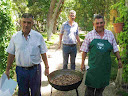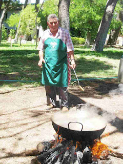 Este año no he querido dejar pasar la ocasión y hemos llegado los primeros con el único fin de ver como Juan hacía la caldereta (por cierto, insuperable). Él dice que echa solo lo que vemos, que no tiene ningún ingrediente secreto, que es cuestión del fuego y de la mano (en eso estamos de acuerdo). Pero no me fío (bueno, no nos fiamos ninguno) ni un pelo. Sobre todo por esa carita de pillo que pone cuando te lo cuenta y esa risa picarona... ¡Juan, tú nos estás guardando algo que no nos dices...!.