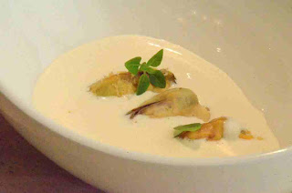 - Sopa fría alcalina y marinera de mejillones de roca. Unos mejillones pequeños, de roca, sabrosos, enteros, en su punto, con costrones de pan, son bañados con una suave marinera a base de ajo, vino blanco y emulsionada con huevo.