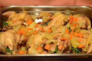 Perdices estofadas con patatas panaderas. |