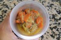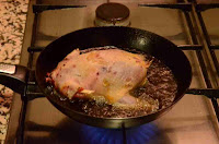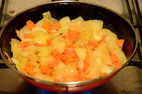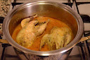 Con carácter general las perdices suelen quedar "un poco" duras, es por ello por lo que las someto a una segunda cocción. Así cogemos las perdices que vayamos a comernos (en nuestro caso dos) y las introducimos en una cazuela, junto con parte del caldo de la cocción y parte también de las cebollas y zanahorias cocidas pasadas por la batidora (como si se tratara de una salsa española).