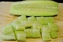 Lavamos todas las hortalizas y, seguidamente, echamos los tomates al vaso (podéis incluso dejar las ramas, le aportaran un sabor muy característico), el pepino en dados (al que habremos quitado la piel), el pimiento amarillo (despepitado) y cortado, el ajo entero pelado y la cebolla cortada en brunoise gruesa. Cerramos la tapa del vaso de la thermomix y empieza la función...