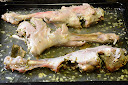 Lavamos las piernas de cabrito y las colocamos en un plaqué de horno.