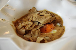 Y un huevo poché con espuma de boletus y trufa. Versión de los huevos en sartén que prepara Abraham García en Viridiana. ¡Muy rico!.