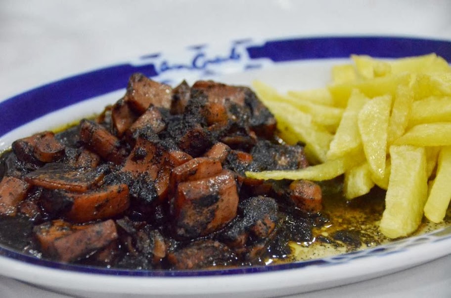 Los señores no pueden irse sin probar los calamares en su tinta, nos dijo Clemente. Pues Clemente, una de calamares en su tinta, con la salsita de cebollita bien trabadita y unas patatitas recién fritas. Sabores de antaño.