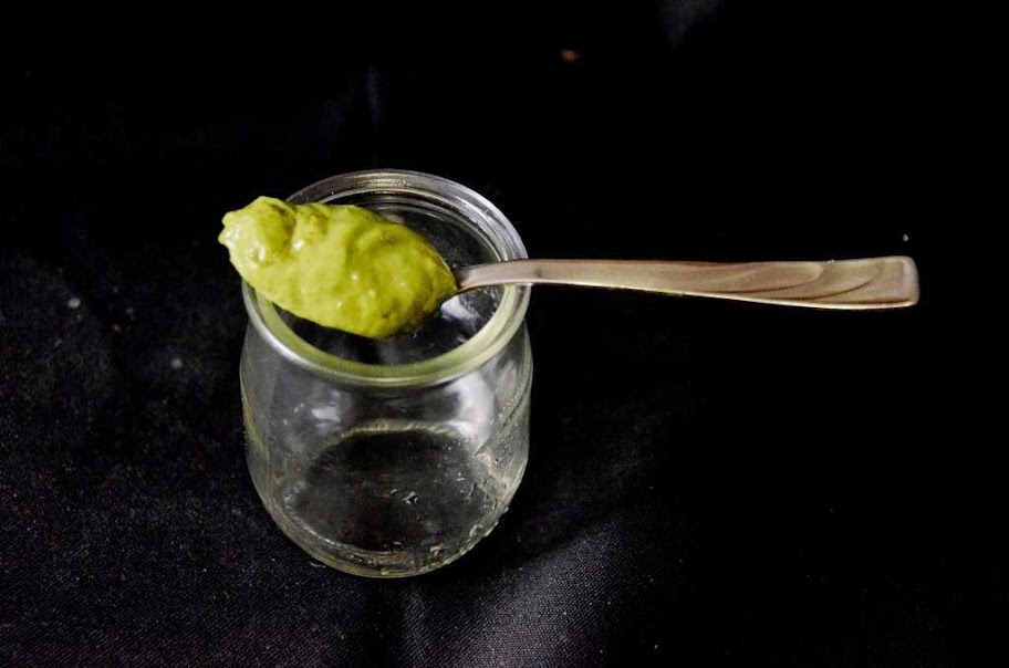 Comenzamos sacando dos dientes de ajo negro, picando finamente y majando en un mortero. Añadimos 20 cc. de aceite de oliva y dejamos macerar durante el tiempo que empleamos en preparar la receta. Así el aceite adquirirá los toques agridulces, balsámicos, de regaliz que le aporta el ajo negro.