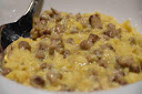 Después no podía faltar el revuelto de perretxicos, plato clásico por San Prudencio (festividad que coincidió con esta visita). Para mi gusto en su punto, aunque entiendo que pueda haber clientes que digan que "poco cuajado". En cualquier caso el sabor de esta seta de primavera es inolvidable.