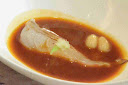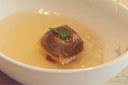 - El rabo de toro cocinado... desde los fondos de los mares. Imitando al guiso tradicional de rabo de toro estofado con patatas, este otro, de atún toro, muy caliente, estofado en salsa de carne, presenta matices similares. ¡Una delicia!.