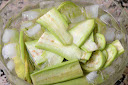 Las vamos introduciendo en un cuenco con agua fría, hielo y una pizca de sal, para que queden tersas y quitarles el amargor (aunque éstas no se si amargan, es la primera vez que las cocino, pero por si acaso...).