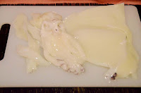 que se va haciendo la crema de erizos, cogemos la sepia y separamos la cabeza y