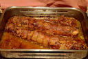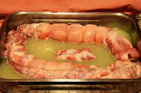 Lo ponemos en una bandeja de horno y echamos el caldo que hemos hecho con las verduras y los huesos. Rectificamos de sal y lo introducimos en el horno precalentado a 180º C durante una hora.