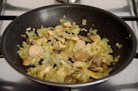 Ahora incorporamos las setas de cardo (en este caso unas setas de cardo de criadero, pero minis), salpimentamos y rehogamos un par de minutos. Retiramos del fuego y reservamos.