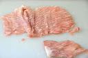 Empezamos con los secretos de cerdo ibérico, retirando con el cuchillo algún exceso de grasa que pudieran tener y abriéndolos (en la medida de lo posible) para hacer la pieza algo más grande y poder enrollarla mejor. Reservamos.