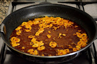 Cuando estén dorados, incorporamos una cucharada sopera de pimentón dulce. envolvemos rápidamente para que no se nos queme.