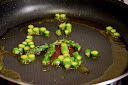 Una vez cocidos y bien escurridos, los salteamos ligeramente en una sartén con una cucharada de aceite de oliva virgen extra. Retiramos del fuego y reservamos.