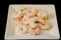 En cuanto a las gambas, si son congeladas (como en nuestro caso) las dejamos descongelar dentro del frigorífico, retirando de vez en cuando al agua que van soltando.