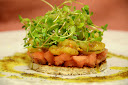 Salseamos con la salsa de las gambasyh el ras el hanout y añadimos unas semillas de amapola. Retiramos el aro y... ¡Buen provecho!.
