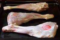 Lavamos las piernas de cabrito y las colocamos en un plaqué de horno.