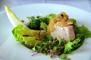 Continuamos con un bonito escabechado en ensalada. No podía ser de otra forma estando en temporada y más aún conociendo la fama que tienen las tierras zamoranas para los escabeches. Textura suave pero firme. En su punto de vinagre. Hecho pero jugoso... ¡Inmejorable!.