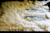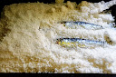 Colocamos encima las sardinas, con tripas y sin desescamar y las cubrimos con otro dedo de sal gorda.