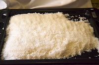 Y volviendo a la receta. Cubrimos el fondo de un plaqué de horno con un dedo de sal gorda.