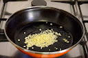 Ponemos una sartén al fuego con un chorretón de aceite de oliva y, cuando esté caliente, incorporamos un diente de ajo finamente picado. Si nos os gusta el ajo, o vuestro Doctor no os lo recomienda, podéis eliminarlo.
