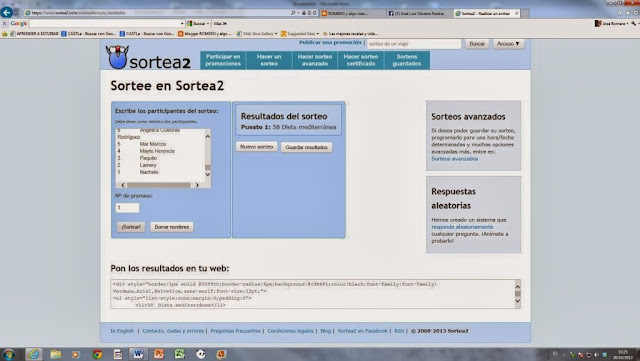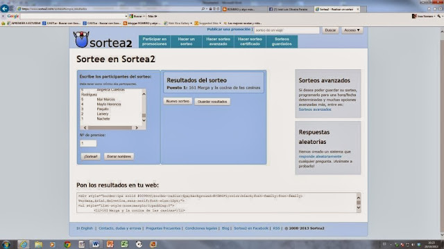 Os cuento como ha sido el sorteo. He preparado una lista con todos los seguidores del blog y luego los he introducido en la página www.sortea2.com.