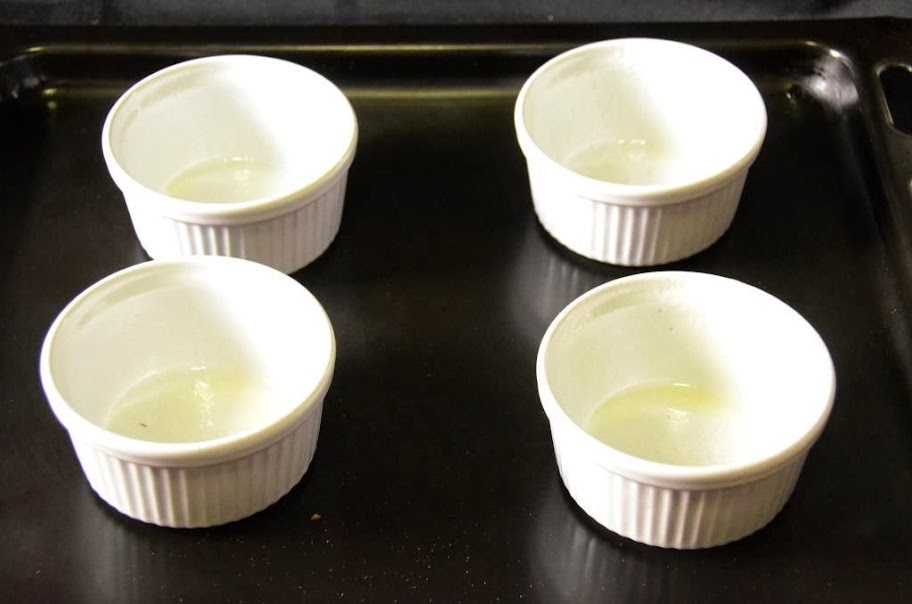 Dejamos unos 10 minutos, pero estaremos muy atentos para que suban lentamente los soufflés pero no se nos quemen y sacamos del horno.