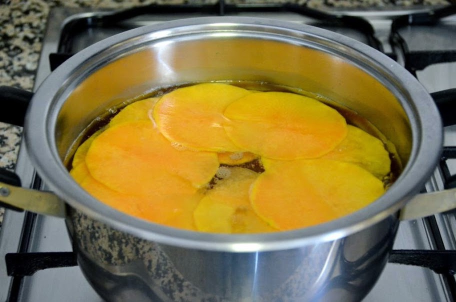 En una cazuela ponemos agua y cuando rompa a hervir sazonamos e introducimos las rodajas de calabaza. Dejamos cocer hasta que rompa a hervir.