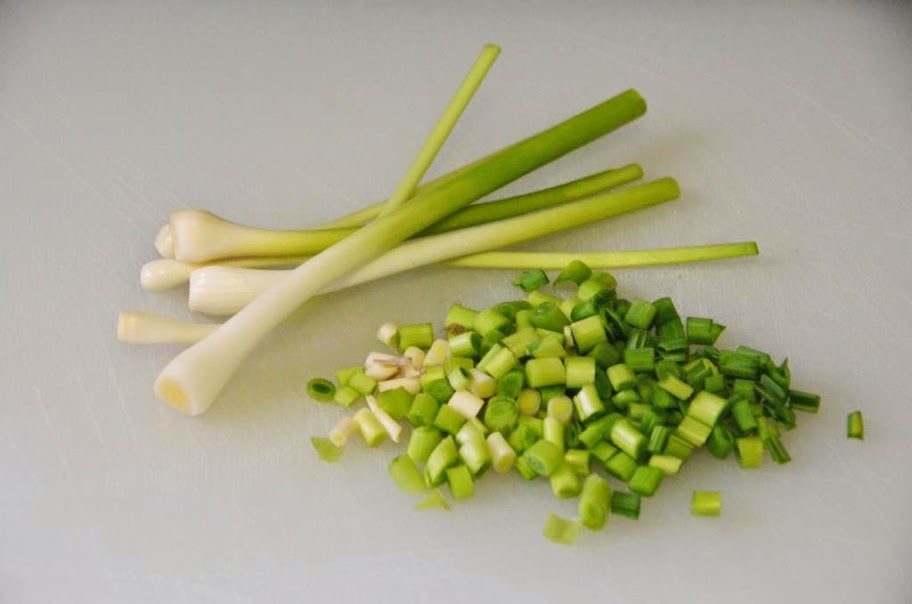 Añadimos los ajetes (salvo la parte blanca) y los trigueros. Envolvemos y dejamos hacer un par de minutos. Retiramos del fuego y reservamos hasta el momento de emplatar.