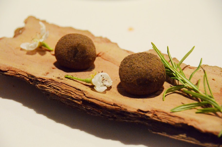Y en plena temporada de trufas, nada mejor que un trampantojo de trufa rellena de queso y setas. Espectacular la densidad para mantenerse en la mano y la textura cremosa en boca, así como su potente sabor a setas.