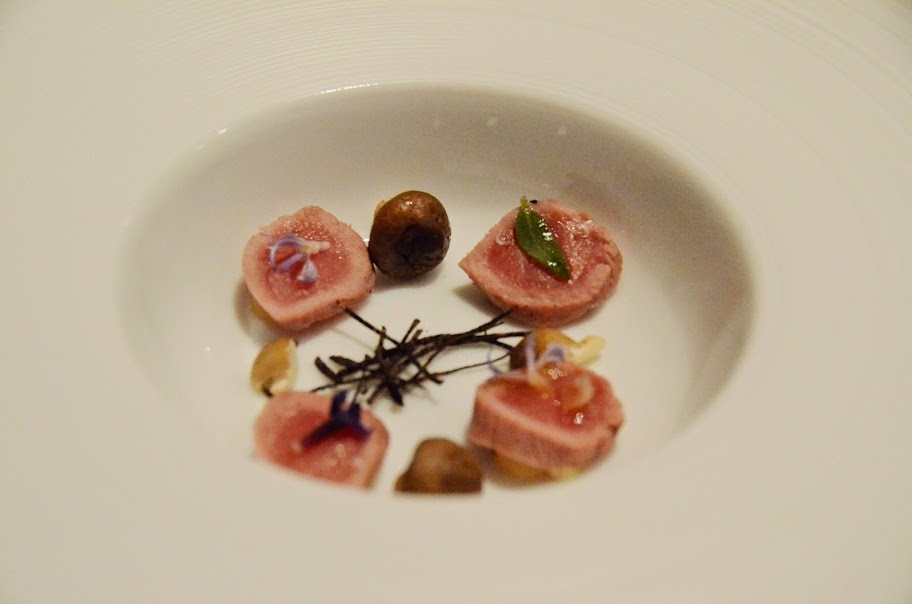 E indudablemente, tampoco podía faltar la caza: perdiz asada con berenjena ahumada. DE_LI_CI_OSA, como Manolo de la...