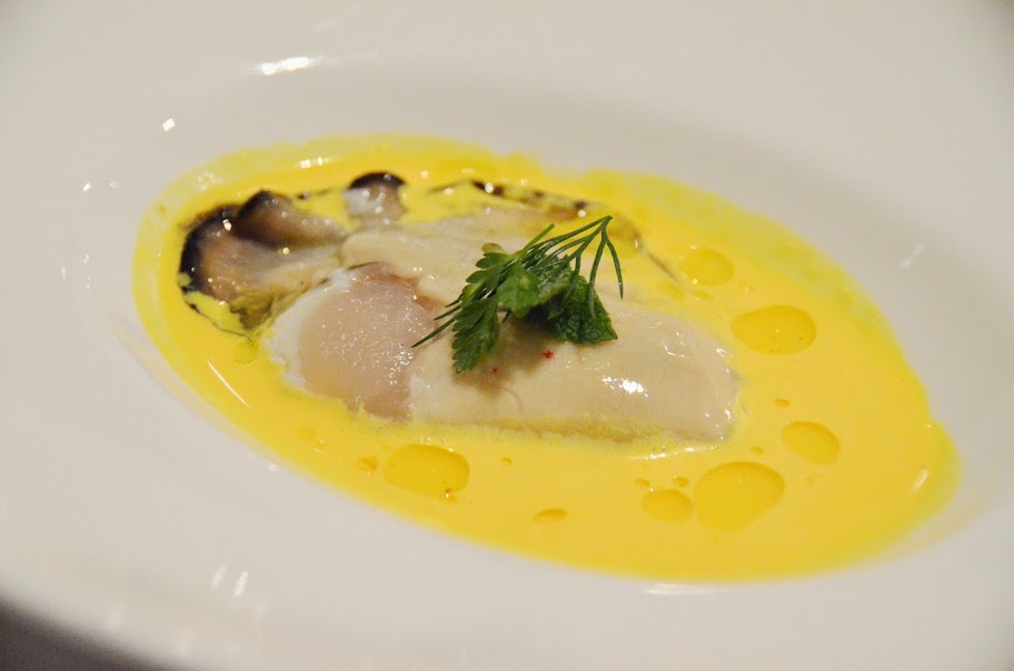 Y continuamos con ostra, calabaza, cítricos y azafrán. Sorprendente.